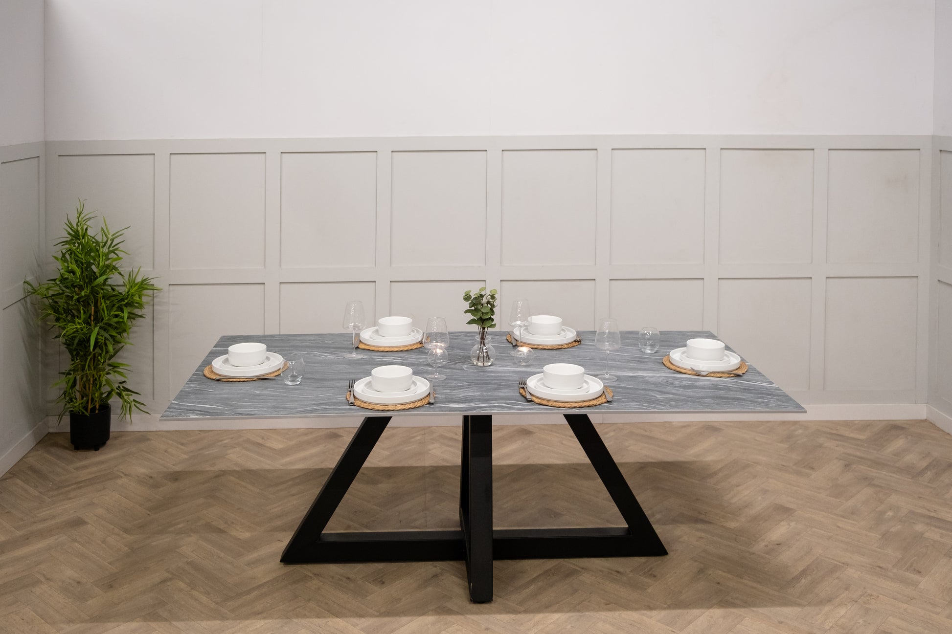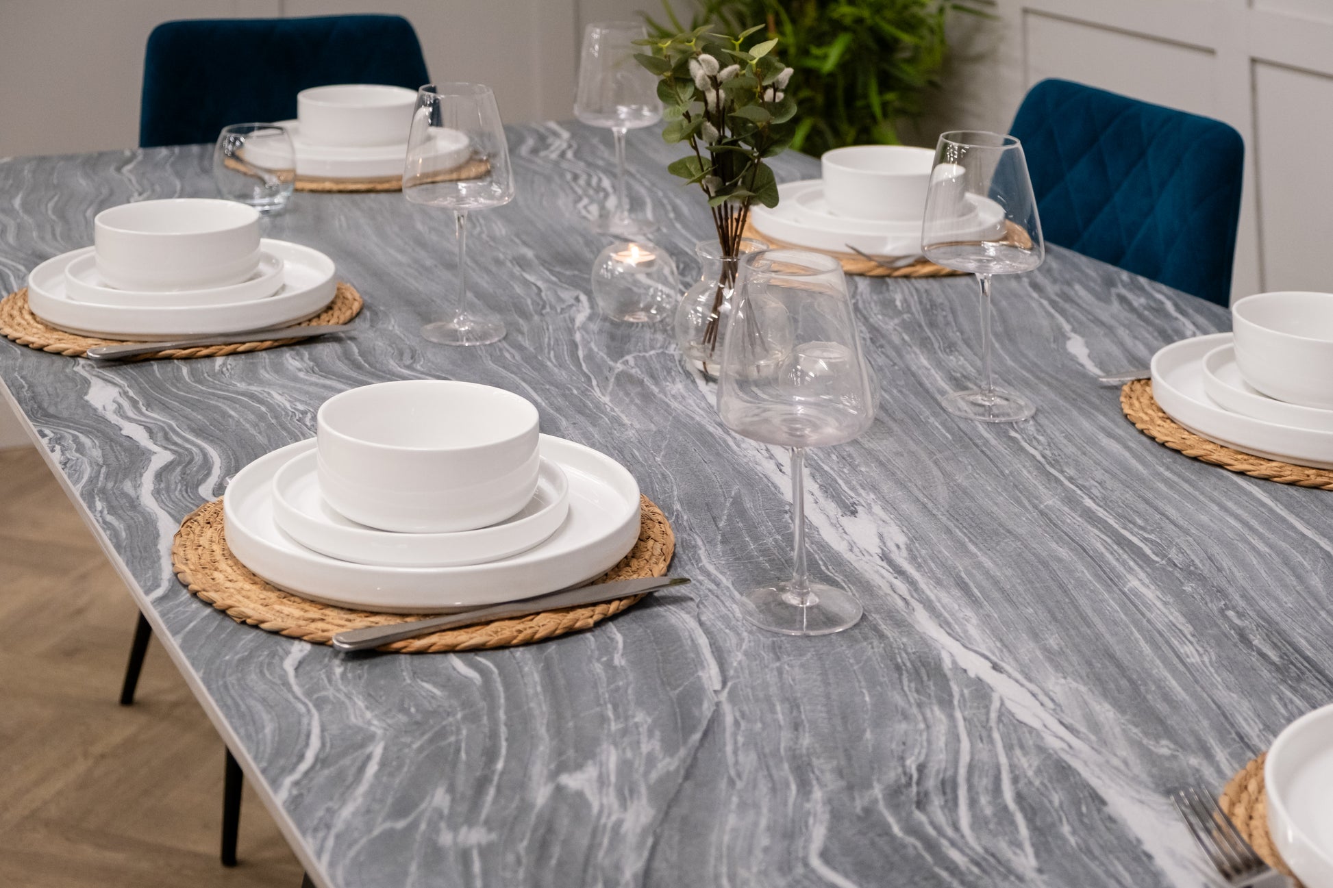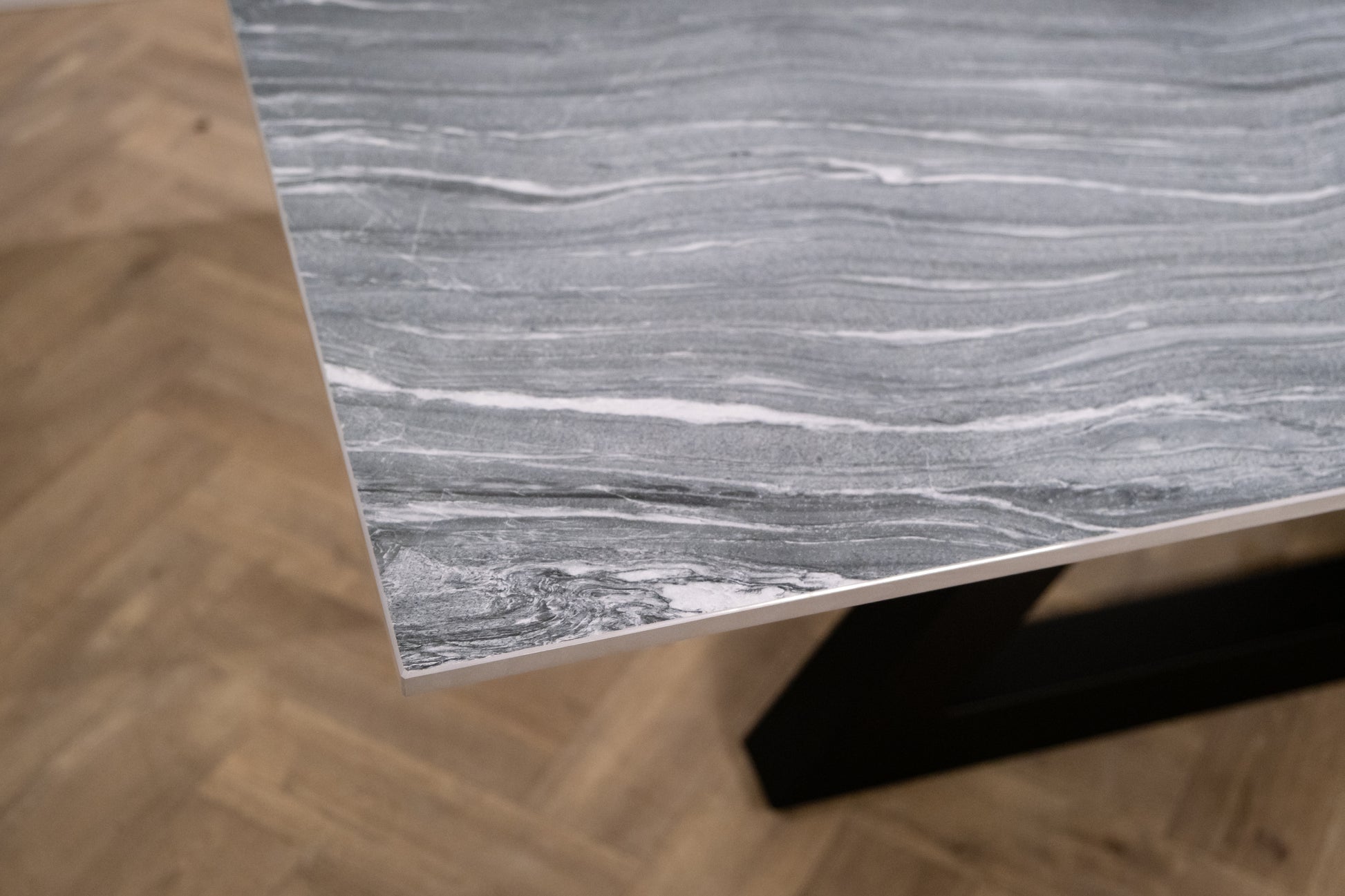 Made from high-quality porcelain in a versatile Fusion Grey shade, the surface features a soft matt finish that complements the sleek chamfered edge for a subtle touch of sophistication. With a durable 12mm thick tabletop, it’s built to withstand daily use while maintaining its refined appearance.